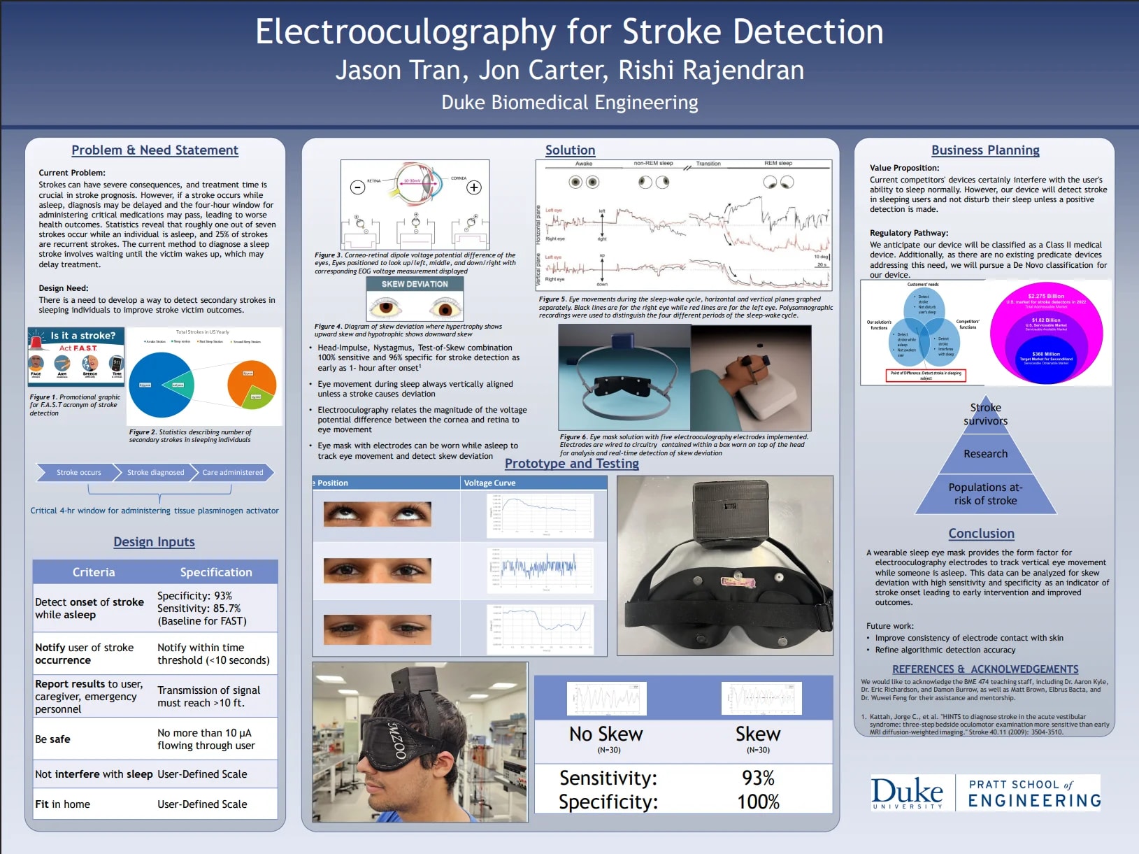 For individuals who have recently survived a stroke, the risk of a secondary, potentially fatal stroke looms largest when they are most vulnerable: while they are asleep. This project is a wearable, real-time stroke detection system disguised as a comfortable sleep eye mask. By utilizing electrooculography (EOG) to track eye movement and an onboard microcontroller to perform real-time signal processing, the device acts as an automated sentinel. It is designed to identify the exact onset of a stroke during sleep and immediately alert caregivers and emergency personnel, transforming a delayed medical crisis into an actionable, treatable event.